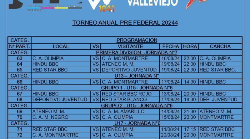 Read MoreLa Primera División y las Divisiones Formativas del Torneo Anual Pre Federal 2024 “Radio Valle Viejo de la Federación de