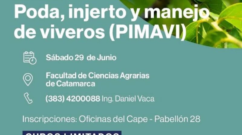 El dictado comenzará el sábado 29 de junio en la Facultad de Ciencias Agrarias de la UNCA. Por más información, comunicarse al (383) 4200088, contacto, Ing. Daniel Vaca.