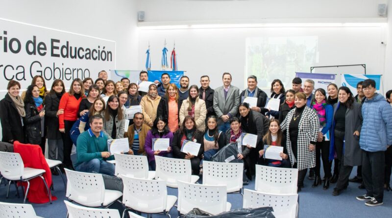 En el salón auditorio que posee del Ministerio de Educación, se llevó a cabo la entrega de semillas, sistemas de riego y certificados a las instituciones educativas que participaron en la capacitación “Huertas Agroecológicas Escolares: Fuente de Saber”. El evento estuvo encabezado por el ministro de Educación, Dalmacio Mera, el secretario de Medio Ambiente del Ministerio de Agua, Energía y Medio Ambiente, Gustavo Báez, el secretario de Producción del Ministerio de Inclusión Digital y Sistemas Productivos, Fernando Molina, funcionarios, equipos directivos y docentes.