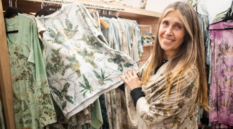 En Trama (@trama.cba) la impresión botánica cobra vida en las telas 100% algodón, una propuesta de indumentaria que celebra la naturaleza en cada estampado. Con hojas de casuarinas como protagonistas en sus creaciones, Micaela Ibarra, la diseñadora detrás de Tramas, tiñe prendas con plantas locales como el romerillo, encontrando en los caminos de Sierra Chica en Córdoba su paleta de colores naturales, de inspiración bohemia, con túnicas, blusas frescas y holgadas, y palazos que de adaptan a todos los talles.