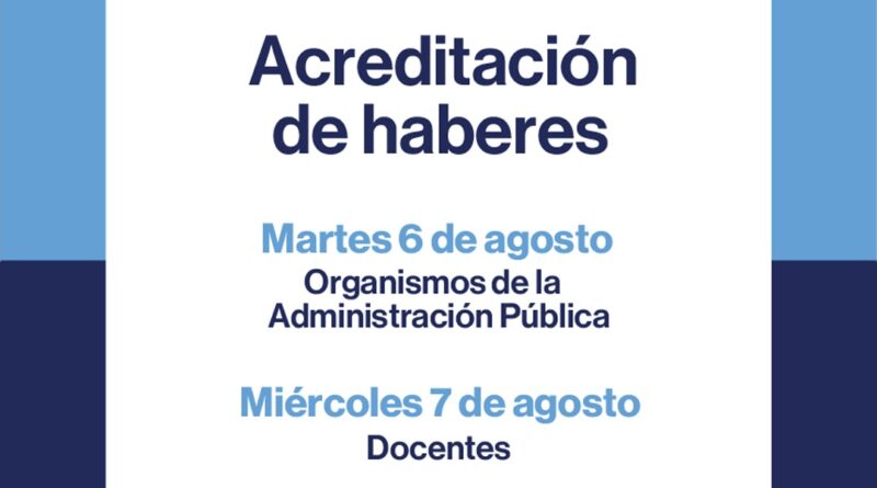 El Ministerio de Economía dio a conocer hoy el cronograma de acreditación de los haberes del presente mes de Julio de 2024. Será el siguiente: