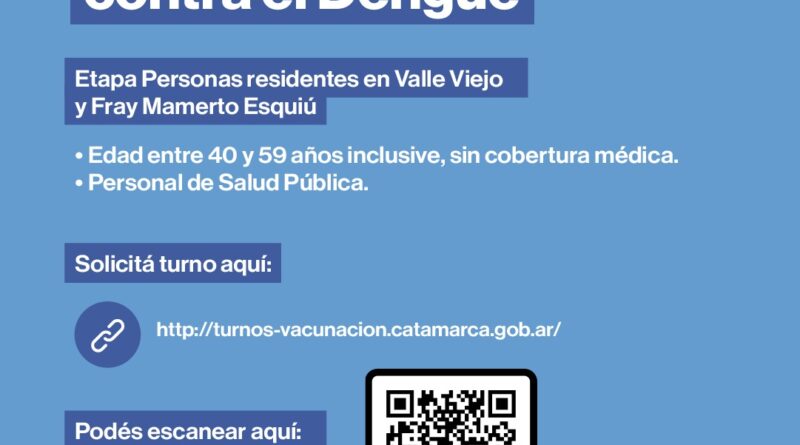 Se extiende la inscripción para residentes de Valle Viejo y Fray Mamerto Esquiú para acceder a la vacuna contra el dengue
