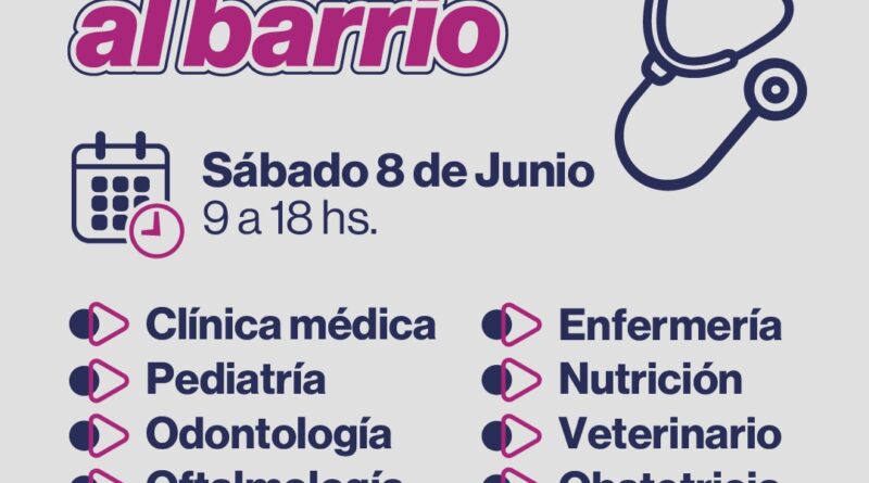 El Ministerio de Salud de la Provincia, a través del Programa Lleguemos al Barrio, brindará asistencia el sábado 8 de junio en las calles Osvaldo Gómez esquina Jesús Lobos en el Barrio Parque Norte en el horario de 9 a 18 horas.